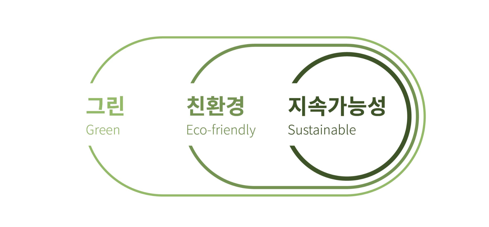 그린/친환경/지속가능성 이 3가지 용어에 대한 정리에 앞서 가장 중요한 점은 이 단어들은 동의어가 아니라는 점이다. 우리가 쉽게 접하는 뉴스나 잡지 등에서 이 3개의 단어를 혼용해서 사용하는 경우가 많은데 그린의 의미가 친환경 용어 중 가장 포괄적인 단어이다. 아래 이미지가 100% 맞다고 볼 수는 없지만 대략적으로 단어 구분을 했을 때 가장 포괄적인 그린을 가장 큰 원에 배치하고, 기준이 세부적일 수록 안쪽에 배치하였다.